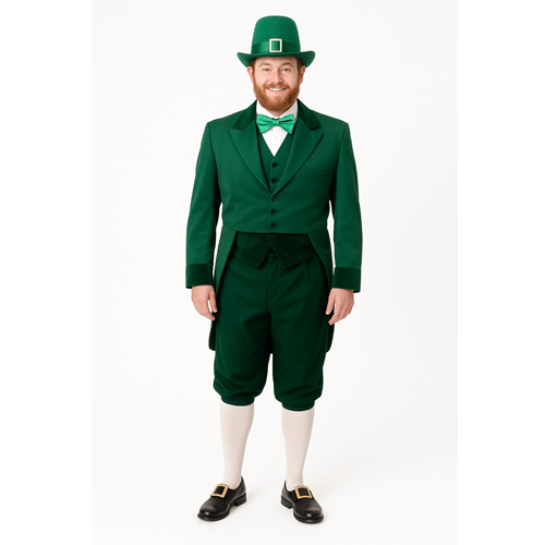 Bring a bit of Irish charm to any event with the Leprechaun Rental costume, a festive and eye-catching ensemble ideal for St. Patrick’s Day celebrations and themed performances. This costume features a vibrant green velvet jacket and matching knickers, a gold-trimmed vest, a white shirt, and a green bow tie. Topping off the look is a classic green top hat that completes the unmistakable leprechaun style. Whether you're leading a parade, entertaining at a party, or appearing in a stage production, this costume delivers a whimsical and polished appearance. Available in adult standard size; measurements are required to ensure the best fit.